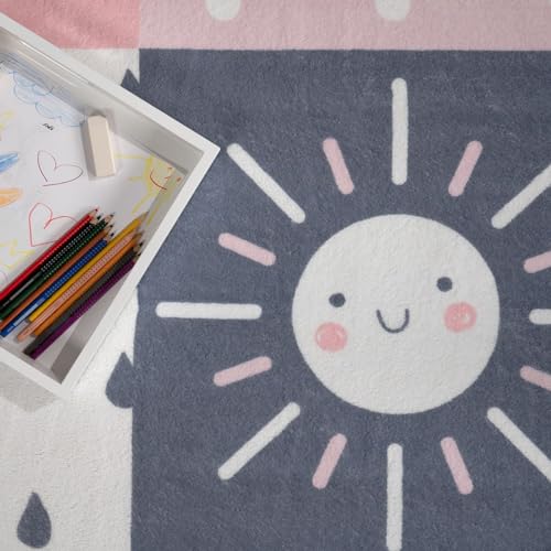 TT Home Tappeto per cameretta Tappeto per bambini ragazzo ragazza Tappeto bambini cuori, Colore:Grigio Rosa, Dimensione:80x150 cm