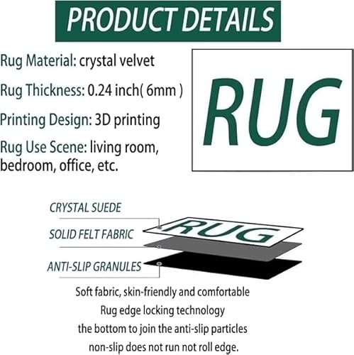 Materiale antiscivolo: il materiale principale del tappeto anime è la fibra di poliestere, lo strato superficiale è materiale di pile di cristallo. Il pelo corto non perde peli, spesso e antiscivolo, delicato sulla pelle e confortevole, facile da pulire. La parte inferiore del tappeto da soggiorno ha piccoli punti di presa antiscivolo, che aiutano a evitare che scivoli sul pavimento. La tua famiglia o gli animali domestici possono giocare molto felicemente e comodamente sul tappeto in pelliccia.
