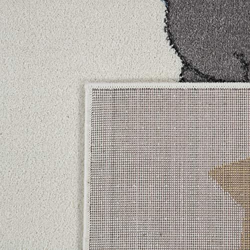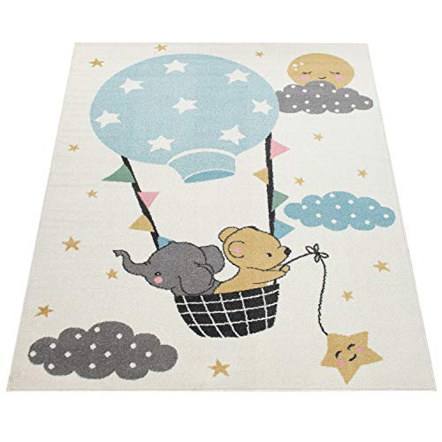 Paco Home Tappeto a Pelo Corto per la Camera dei Bambini, con Elefante, Orso, Palloncino e Luna, in Beige, Dimensione:200x280 cm