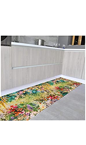 Tappeto Cucina Antiscivolo Lavabile in Vinile |Made in Italy | Passatoia Antimacchia in PVC/COTONE | Interni e Esterni Stampa Digitale Fantasia Risveglio Floreale | Tappeti Lungo in Gomma (74 x 300)