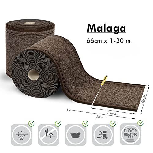 Tappeto da cucina Malaga in feltro, disponibile su misura, per corridoio e cucina, tappeto antiscivolo e facile da pulire (marrone 7058, 66 x 400 cm)