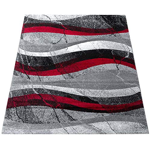 Tappeto di Design Moderno Pelo Corto Onde Effetto Astratto Grigio Nero Rosso, Dimensione:140x200 cm