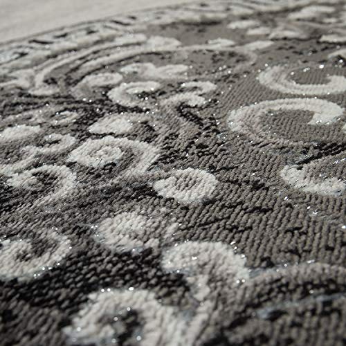 Paco Home Tappeto Designer Classiche Bordura Orientale Decorazioni Nero Gris Bianco, Dimensione:80x150 cm