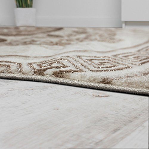 Tappeto Designer Motivi A Decorazioni Classiche Filato Lucido Beige Marrone, Dimensione:160x220 cm