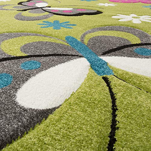 TT Home Tappeto A Farfalla Verde Grigio Fucsia Crema Stanza dei Bambini Tappeti Butterfly, Dimensione:120x170 cm