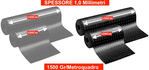 TAPPETO GOMMA NERO GRIGIO IN PVC COPERTURA PAVIMENTO LARGO 100cm BOLLO BULLONATO (10 Metri, GRIGIO)