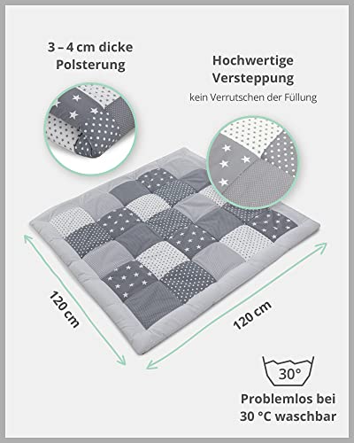 Tappeto per neonato ULLENBOOM ® stelle grigie (120x120 cm, ideale come copertina per la carrozzina, adatta come tappeto gioco)