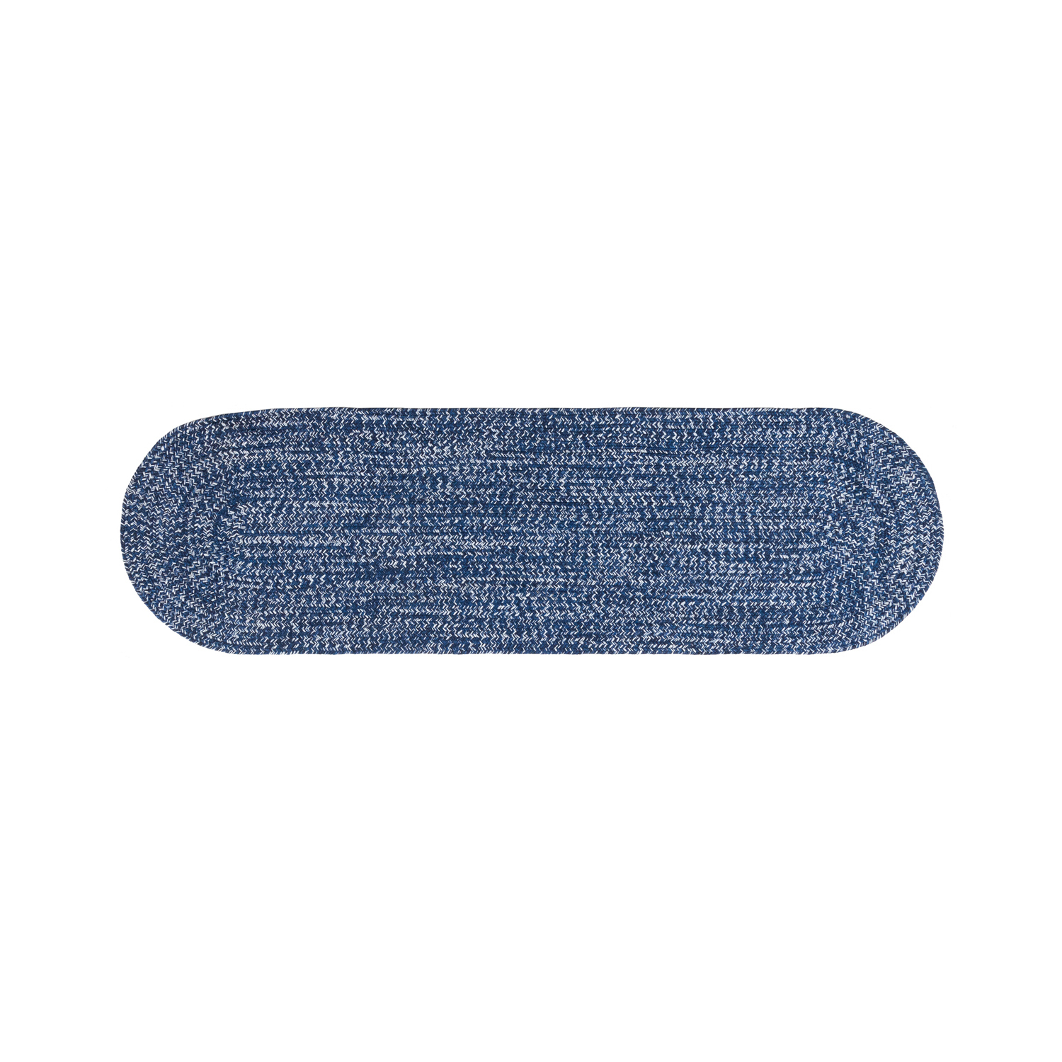 Questo bellissimo tappeto ovale è adatto sia a contesti d'arredo interno che esterno grazie alla tessitura piatta intrecciata in una particolare lavorazione che ne incrementa la robustezza. E poi è tessuto a mano! Il mix di filati bianco, avorio e blu crea un fantastico effetto cangiante. Dimensioni: 120x60 cm.