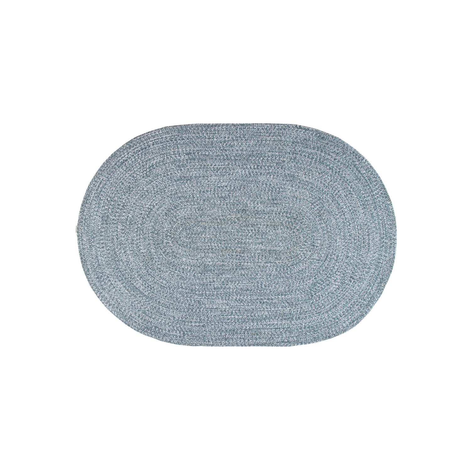 Questo bellissimo tappeto ovale è adatto sia a contesti d'arredo interno che esterno grazie alla tessitura piatta intrecciata in una particolare lavorazione che ne incrementa la robustezza. E poi è tessuto a mano! Il mix di filati bianco e avorio crea un fantastico effetto cangiante. Il color acqua si adatta ad ogni ambiente. Dimensioni: 300x200 cm.