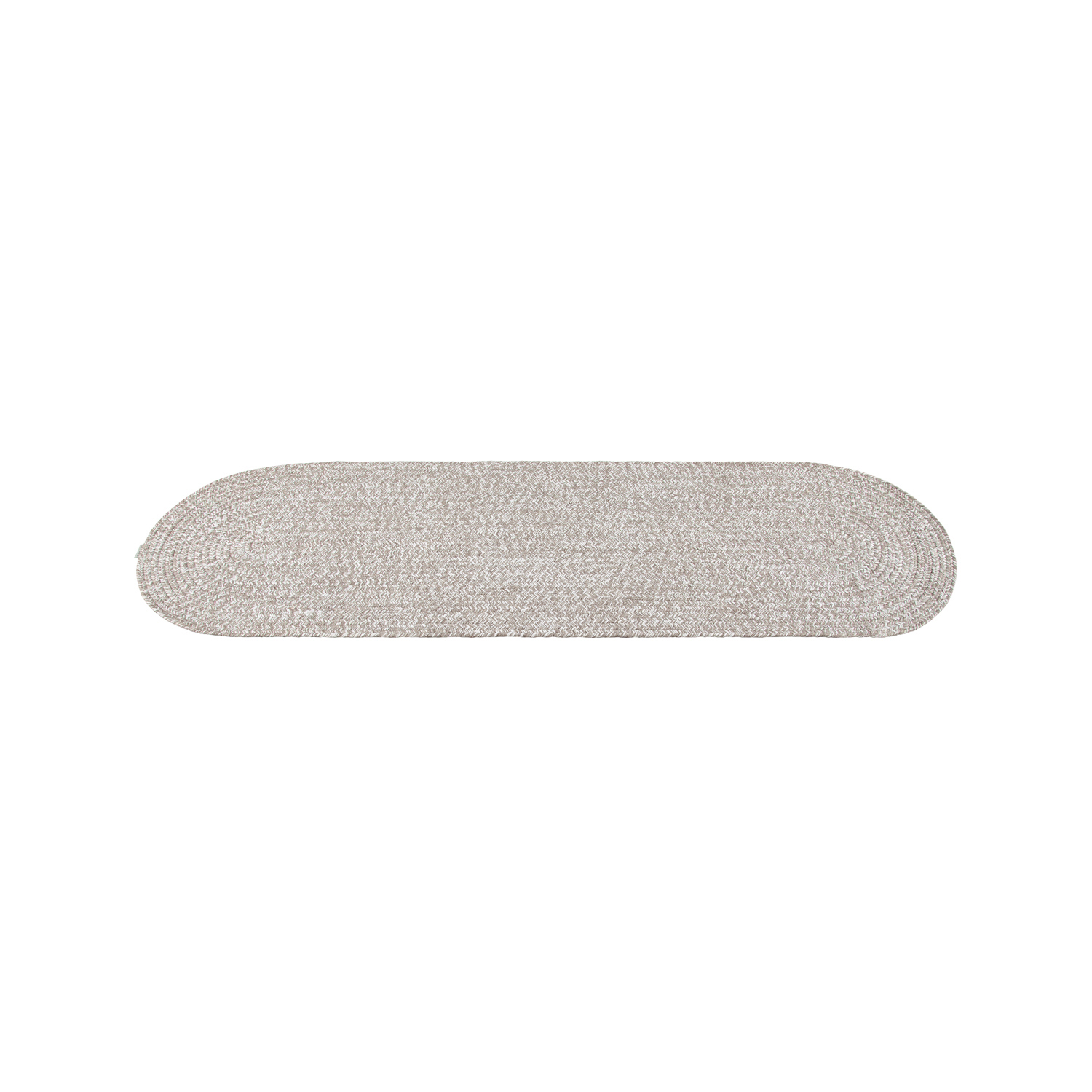 Questo bellissimo tappeto ovale è adatto sia a contesti d'arredo interno che esterno grazie alla tessitura piatta intrecciata in una particolare lavorazione che ne incrementa la robustezza. E poi è tessuto a mano! Il mix di filati bianco, avorio e beige crea un fantastico effetto cangiante. Dimensioni: 200x60 cm.