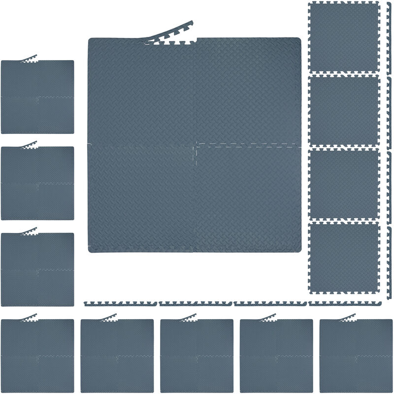 Riduci al minimo i danni al pavimento e il rumore durante gli allenamenti in casa con gli attrezzi da fitness grazie a questo tappetino da palestra. I 40 tasselli a puzzle con 80 strisce per il bordo possono essere incastrati come vuoi tu, per creare la base perfetta per attrezzature sportive, come panche o tapis roulant, o pesi. Usa il tappeto da fitness per esercizi addominali o yoga. Non solo risparmi danni al tuo parquet o piastrelle, ma risparmi anche fastidi ai vicini di casa. Tappetino a puzzle in dettaglio - Misure per piastrella L x P: 60 x 60 cm ca. - Misure del bordo L x P: 4 x 62 cm ca. - Spessore di ogni tassello: 1 cm ca. - Superficie totale del tappeto: 15 m² ca. - Peso di ogni elemento: 270 g ca. - Materiale: EVA, senza BPA - Colore: grigio Tappeto per allenarsi a casa - Set da 40x tasselli in gommapiuma senza BPA - Tappeto da fitness a puzzle per gli home workout - Da combinare a piacimento - Con parti dritte da attaccare ai bordi - Effetto antiurto - minimizzazione