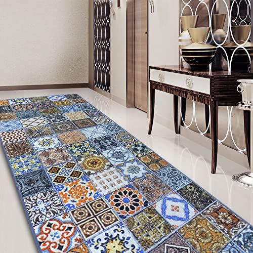 Casa pura tappeto passatoia Bonita patchwork modello in stile vintage - Tappeto moderno per corridoio, cucina, camera da letto a pelo basso corridoio, passatoia da cucina, lana, 80 x 150 cm