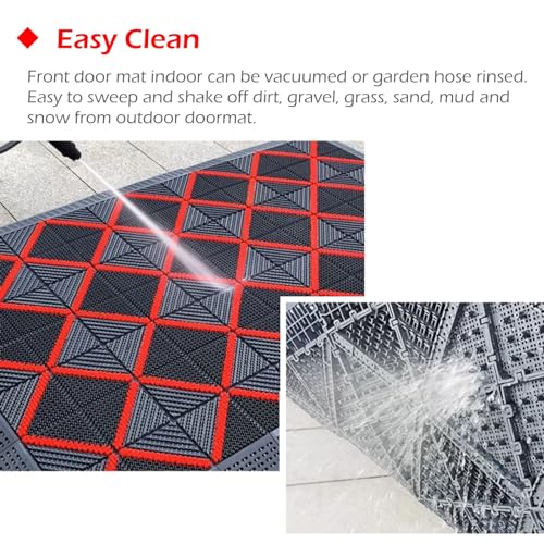 Facile da pulire: lo zerbino della porta anteriore interna può essere aspirato o risciacquato con il tubo da giardino. Facile da spazzare e rimuovere sporco, ghiaia, erba, sabbia, fango e neve dallo zerbino da esterno.