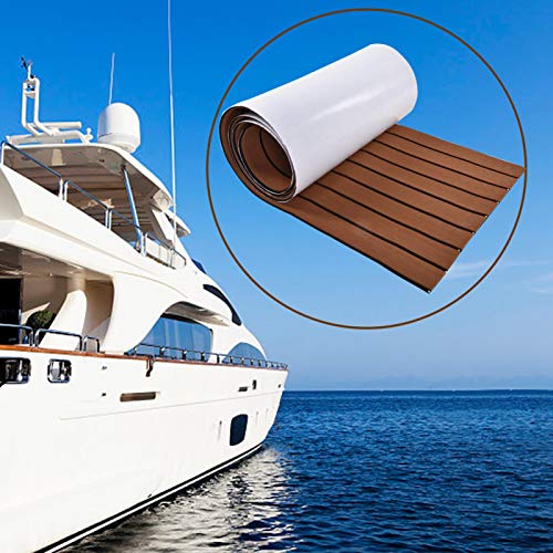 Tappeto in teak EVA per pavimenti in finto teak marino, resistente e antiscivolo, per barche (marrone + barra nera)