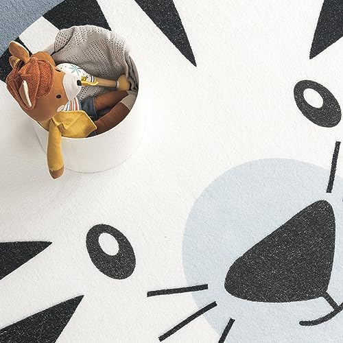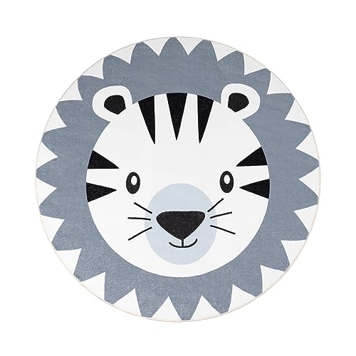 Paco Home Tappeto Rotondo Bambini Cameretta Bambina Testa Di Leone Testa Di Orso Lavabile In Lavatrice Moderno, Dimensione:Ø 120 cm tondo, Colore:Grigio