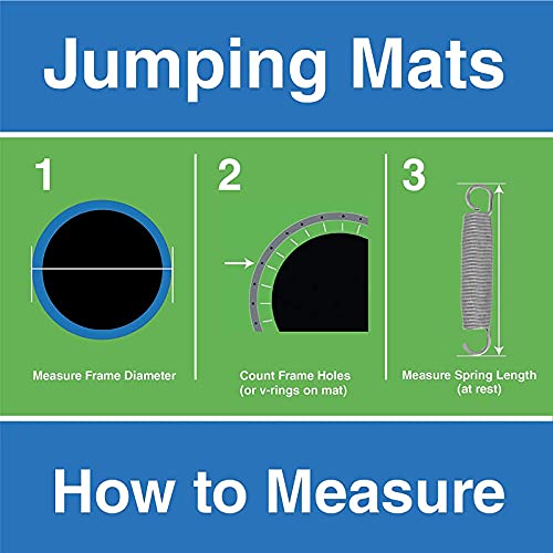 【NOTA】Prima di ordinare, ASSICURARSI che il telaio del trampolino, il numero di anelli a V e la lunghezza della molla non allungata corrispondano completamente ai dati del nostro prodotto! In caso contrario, eventuali dati incoerenti faranno sì che il tappetino acquistato non sia adatto al tuo trampolino!