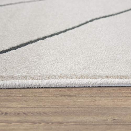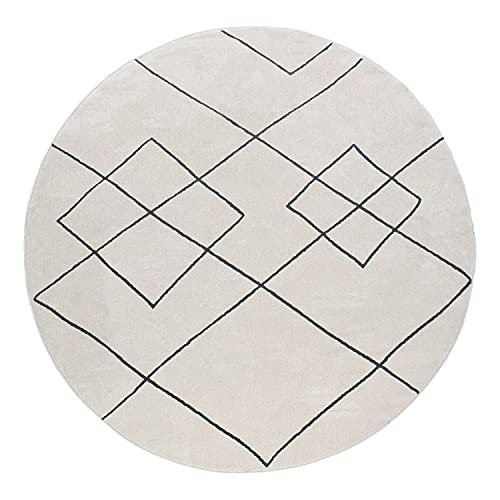 Tappeto per Soggiorno Moderno Design a Rombi scandinavo Pelo Corto Resistente, Bianco, Dimensione:Ø 120 cm Tondo