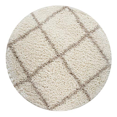 Paco Home Tappeto per Soggiorno a Pelo Alto Shaggy Design scandinavo con Motivo a Rombi, Moderno Beige, Dimensione:160x220 cm