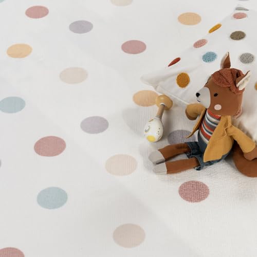 TT Home Tappeto Stanza Bambini Polkadot Lavabile Antiscivolo Soft, Colore:Blu Giallo Crema, Dimensione:160x220 cm