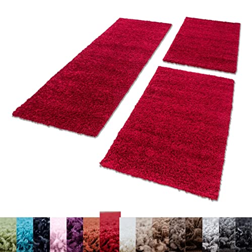 Tappeto stile Shaggy a pelo lungo, set da 3 pezzi - Scendiletto, per camera da letto, Polipropilene, Rot, 2x60x110+1x80x150