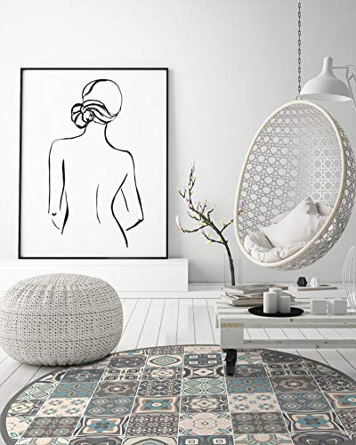 Tappeto Vinile Rotondo Idraulico Azzurro 3 190x190 cm - Tappeto da Cucina Piastrelle Antiscivolo - Tappeto Moderno Salotto - Tappeto Lavabile Ignifugo - Tappeto Grande - Tappeto PVC