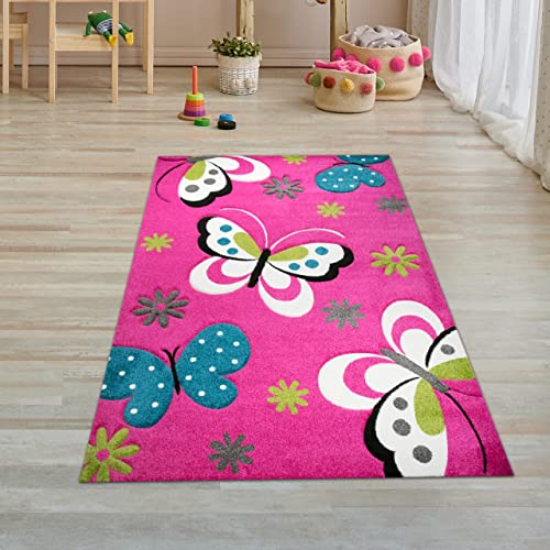 Tappeto vivace a forma di farfalla per cameretta dei bambini ● resistente e durevole ● rosa, 80 x 150 cm