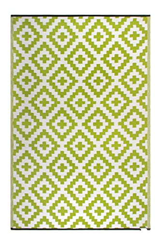 FH Home Tappeto/Tappeto in plastica Riciclata per Interni/Esterni - Reversibile - Resistente alle intemperie e ai Raggi UV - Aztec - Leaf Green/White (150 cm x 240 cm)