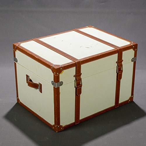 Tappezzdecor BAUL ARCONE in Ecopelle Bianco E Nastri Marrone 57X42X37