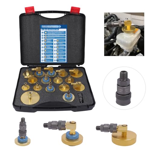 Tappi Adattatori Spurgo Freni Auto -MOTOCOCHE 17 Pezzi Set Adattatori Cilindro Principale Adattatore Pompa Freno per Spurgo Liquido Freni Manuale, Pneumatico, Elettrico (con Snodo Rapido)