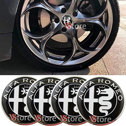 4 Tappi Adesivi Coprimozzo 50mm Compatibili per Alfa Romeo Nero Bianco Black White Cerchi Lega Ruota Coppette