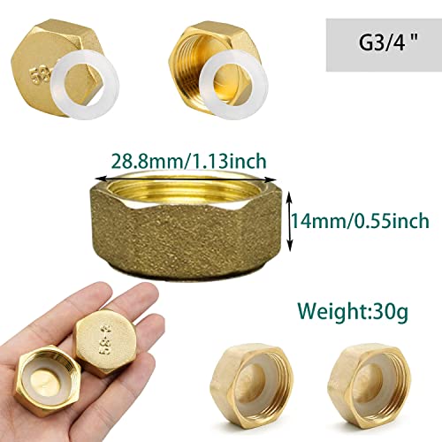 【Design Ideale】 I tappi in ottone da 3/4" sono esagonali con rondelle abbinate per una facile installazione e possono essere utilizzati all'estremità del raccordo per evitare perdite.