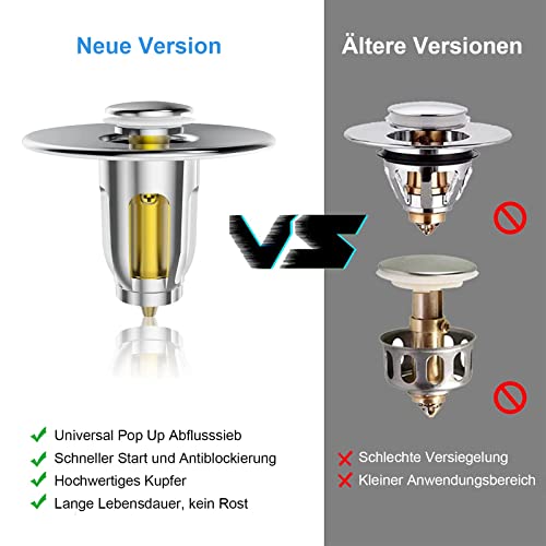 Installazione semplice: basta estrarre il tappo di scarico originale con la mano, inserire il nostro tappo di scarico e premere l'interruttore a molla per sigillare il filtro con facilità. Se si desidera utilizzarlo per diametri più grandi, è possibile aumentare il diametro interno del tappo del lavello con il nostro anello in gomma incluso.