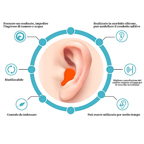 Cancellazione del rumore: i tappi per le orecchie per dormire sono realizzati in silicone di alta qualità, che sono una migliore cancellazione del rumore rispetto ai tappi per le orecchie in schiuma. I nostri tappi per le orecchie in silicone riducono il rumore di un massiccio 27DB, uno dei più alti disponibili e adatti per una lunga durata.