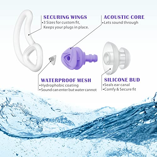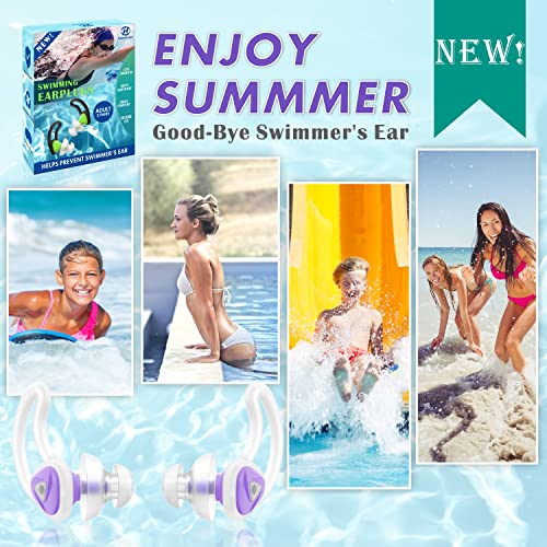 2 paia - Tappi per orecchie da nuoto, Hearprotek silicone riutilizzabile acqua tappi orecchie piscina-Impermeabili tappi per le orecchie per nuotare Bagno Doccia surf (viola)