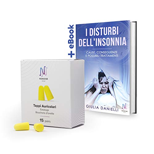 Tappi per orecchie in Schiuma (15 Paia) - Tappi Orecchie per Dormire - Tappi per Orecchie Antirumore - Tappi Auricolari Imballati Singolarmente - EBOOK "I Disturbi dell'Insonnia"