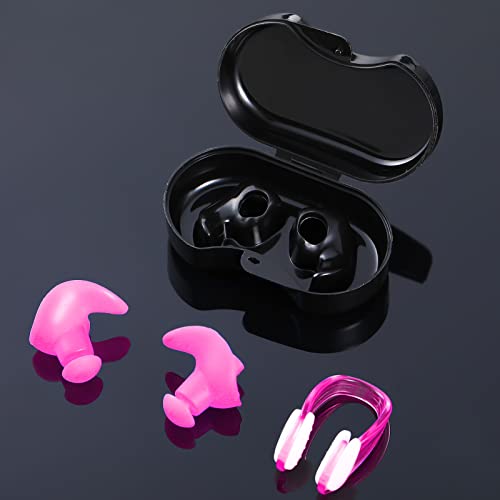 2 Set Tappi per Orecchie in Silicone per Nuoto Clip per Naso Tappi per Piscina Riutilizzabili Impermeabili Professionali per Nuotatori Surf Doccia e Acquatici Protezione (Rosa)