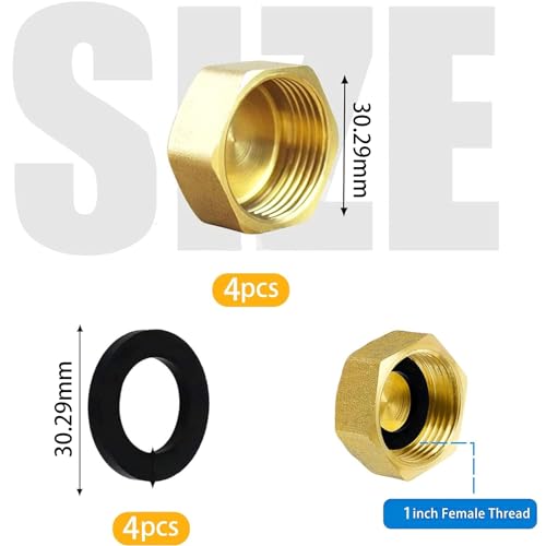 【Cappucci per tubi esagonali】 Tappo in ottone filettato femmina da 1 pollice, tappi per tubi da 1 pollice e guarnizioni per tubi in gomma nera da 4 pezzi. Forte resistenza alla pressione, tenuta forte e duratura senza scivolare, si prega di confermare le dimensioni del prodotto prima dell'acquisto.