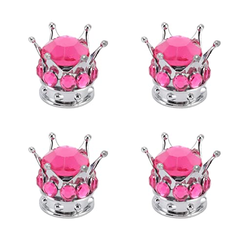 Tappi Stelo Valvola Pneumatico per Auto, 4 Pezzi ABS Tappi Coprivalvola Stelo Ruota Pneumatico Corona Universale Tappi Aria Stelo Auto Diamante per Auto Camion Bicicletta(rosa rossa)