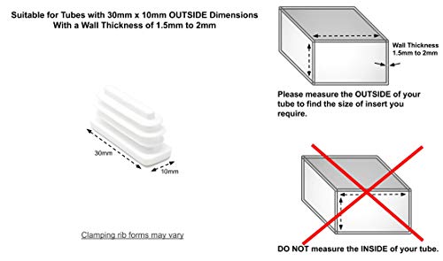 Tappi terminali in plastica per tubi rettangolari, realizzati in Germania (bianco, 30 mm x 10 mm, vedere seconda immagine prima di ordinare questa dimensione, confezione da 12)