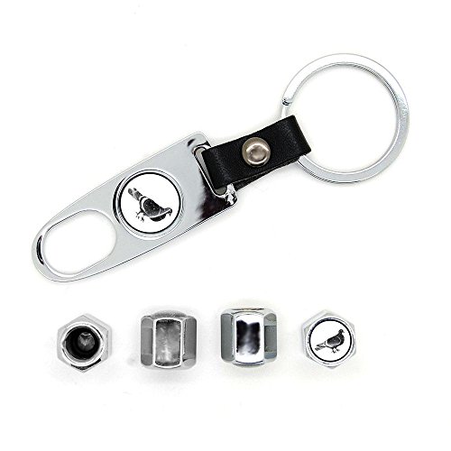 Set di 4 tappi valvole con logo e Ch04 Pigeon portachiavi, colore: cromato