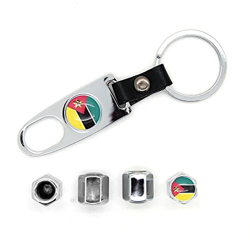 Set di 4 tappi valvole con logo e porta chiave, Mozambico, colore: nero