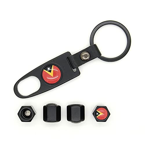 Set di 4 tappi valvole con logo e porta chiave, Timor orientale, colore: nero