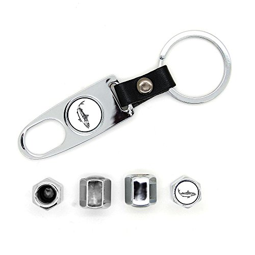 Set di 4 tappi valvole con logo e sgombro Pe07 portachiavi, colore: cromato