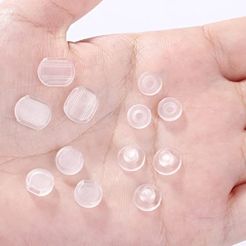 100 tappini in silicone per orecchini, da applicare sul retro degli orecchini, 4 forme, trasparenti