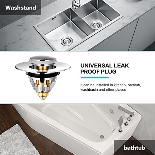 Tappo di scarico universale pop-up, con 2 guarnizioni per vasca da bagno, cucina, lavandino, in acciaio inox