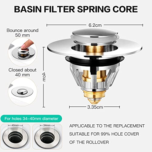 Filtro integrato: più pratico e utile di un normale filtro per laghetto. Rispetto allo scarico del lavandino, questo tappo per lavandino viene filtrato per filtrare alcuni capelli e depositi per evitare l'intasamento del tubo dell'acqua ed evitare che gli articoli cadano.