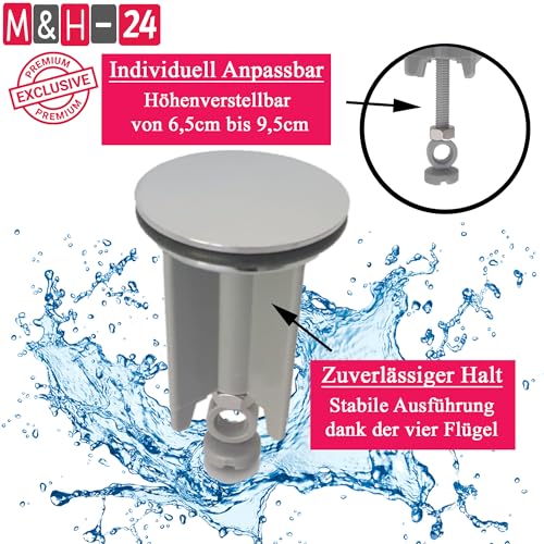 M&H-24 - Tappo universale da 40 mm in metallo cromato color argento per tutti i lavandini e bidet, Waschbeckenstöpsel