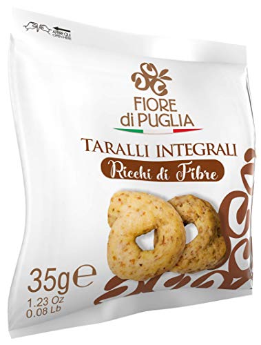 Taralli Fiore di Puglia Integrali-Ricchi di fibre-con olio extra vergine di oliva-n. 60 confezioni monodose salvafreschezza da 35 gr.