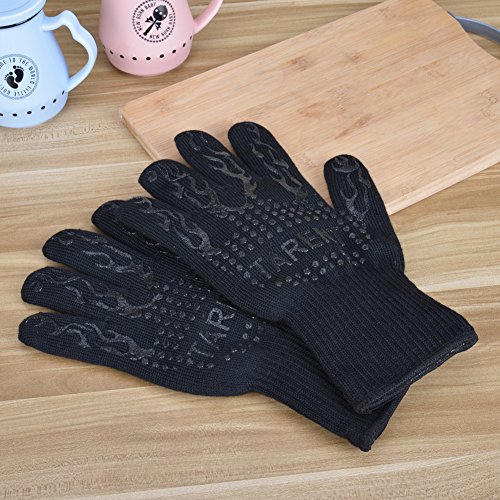 ►Materiale Resistente al Calore di Alta Qualità: Isolati grazie a tessuto ARAMID ad alta densità (lo stesso di Nomex e Kevlar), non prende fuoco e non si scioglie quando esposto ad una fiamma aperta, facile per gestire fuoco da campo, brace o caminetto