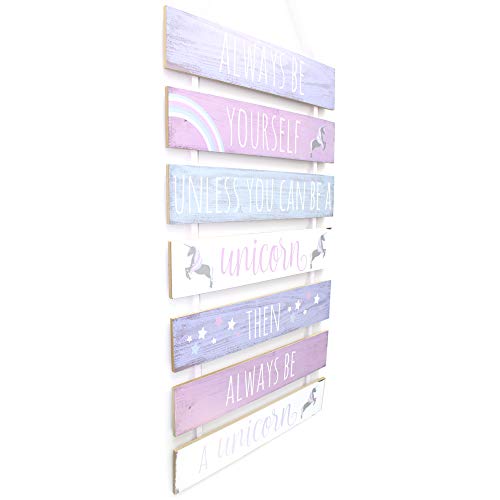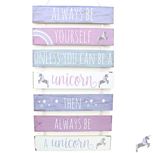 Targa da appendere in legno, 7 pezzi, con unicorno e scritta Always Be Yourself